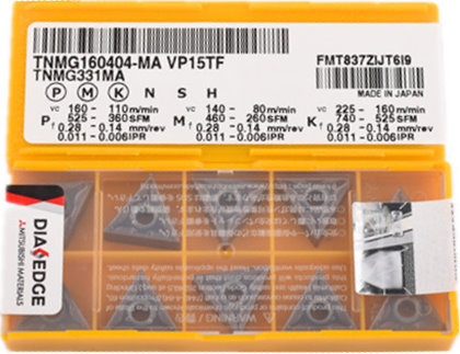 | SNMG120408-MS MP9015 | TCMT16T304 VP15TF | TCMT110204 VP15TF | TNGG160402R-F VP15TF |